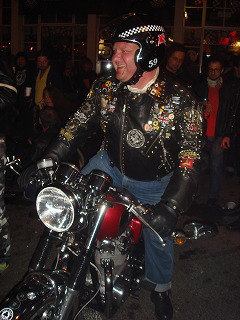 昼ごろはピークを迎えるために、シーフロントはおろか、遥か彼方へ停めなければいけないが2時過ぎともなると帰りだす連中も大勢いるのでフロントの良い場所に停める事ができる。そこでマサヤ夫妻と共に59クラブのブースへ行き、メンバーの登録を行いヘルメットを預かってもらう。ヨーロッパ各国のメンバーと集う一年で一回のチャンスだ。59クラブのブーステントにはひっきりなしにメンバーが訪れてくる。